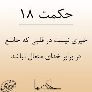 خیری نیست در قلبی که خاشع نباشد در برابر خدای متعال، خاشع یعنی شکسته، دلی که خاشع نبود خیری نیست، خیری نیست در دلی که خاشع و شکسته نباشد؛ همیشه در محضـر حقّیــــم.